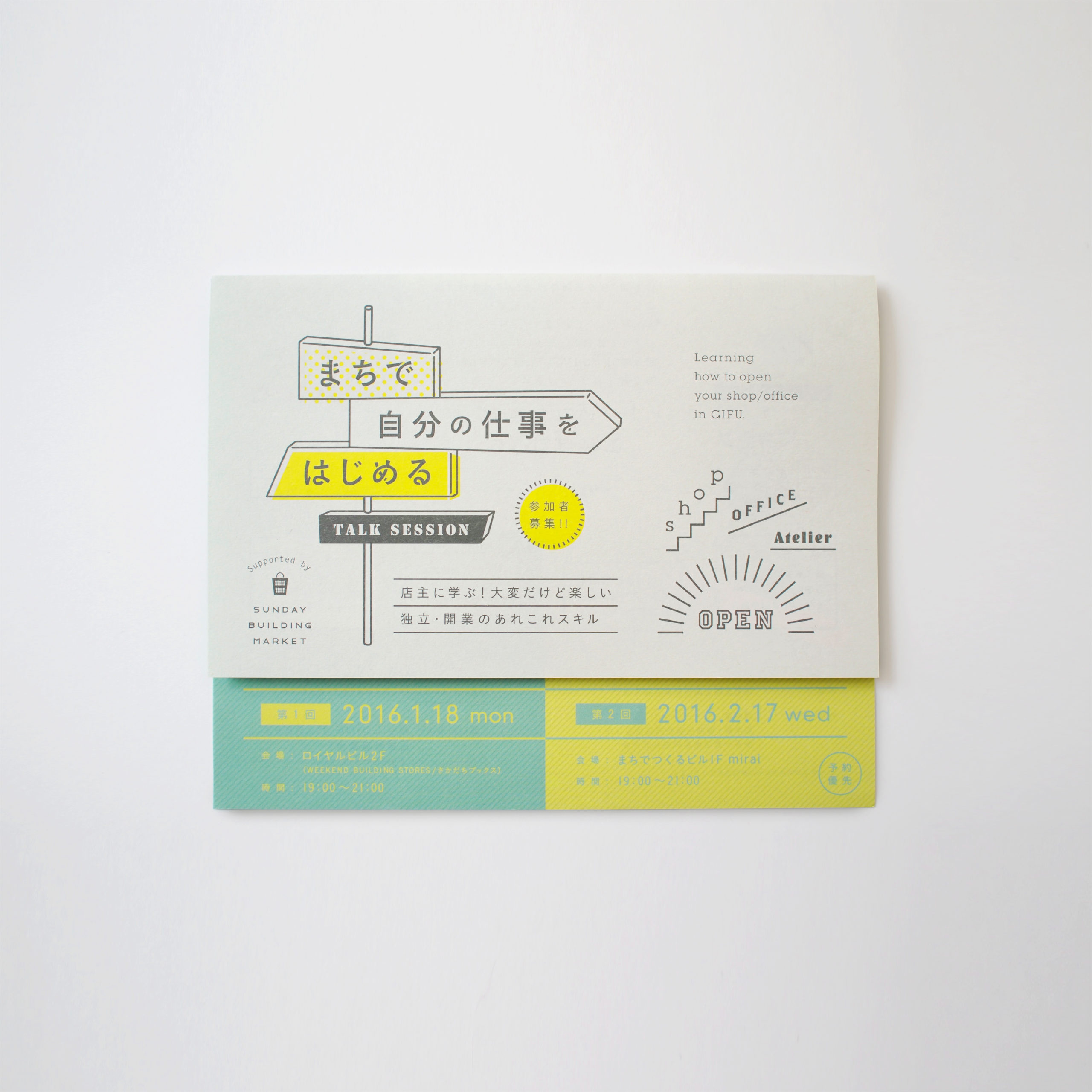 WORKS flyerillustrations まちで自分の仕事をはじめる まちで自分の仕事をはじめる 中面の一部が見える折りにすることで、表紙で2回に分けてのイベントだと言うことがわかる仕様になっています。 Year 2015 Art direction, Graphic design 森 美佳 Client ミユキデザイン テイスト_POPトークイベントやながせ岐阜市 一覧に戻る < PREV NEXT >