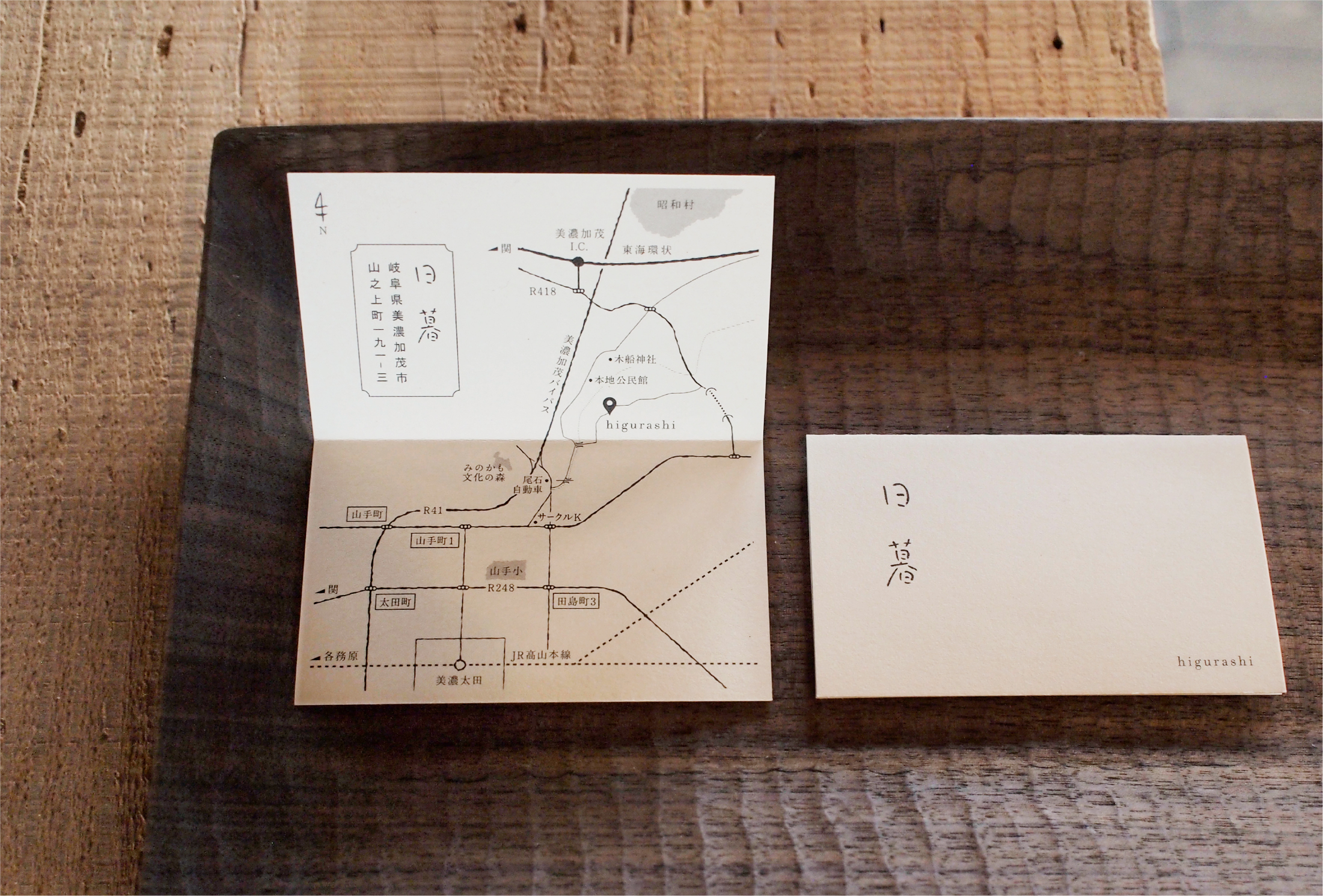 WORKS logocards 日暮 -higurashi- 日暮 -higurashi- 美濃加茂の木工作家、岡田靖則さんが、日々の暮らし/道具をテーマ不定期でオープンするギャラリーショップ。古民家を改装してつくられた落ち着いた店内の雰囲気に合うシンプルで和の雰囲気のあるロゴを制作しました。2つ折りショップカードの中面は地図になっています。 Year 2017 Art direciton, Graphic design 森 美佳(zoomic) Client 日暮-higurashi- ショップカードテイスト_ナチュラル和美濃加茂市 一覧に戻る < PREV NEXT >