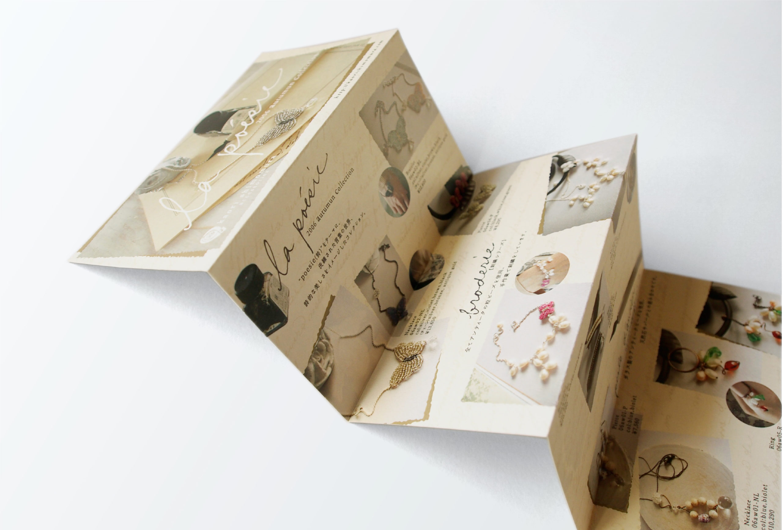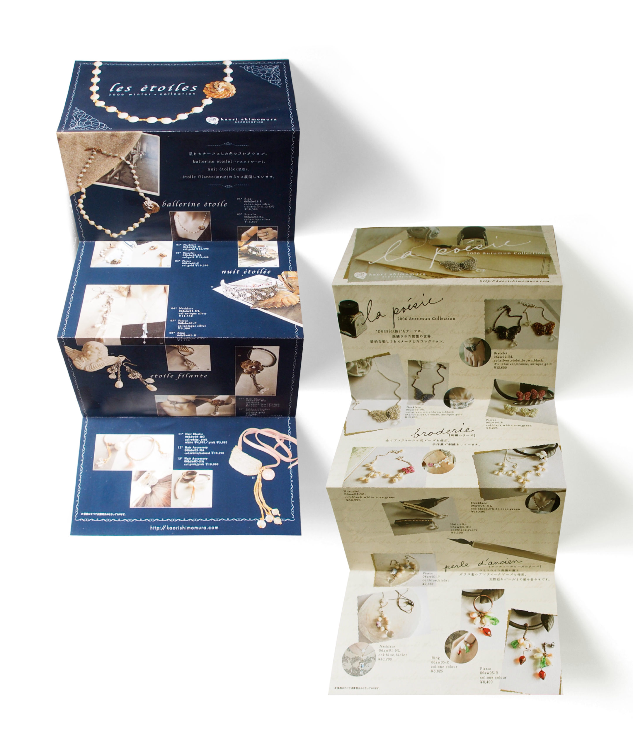 WORKS pamphleaflet kaori shimomura accessories kaori shimomura accessories A面が春夏コレクション、B面が秋冬コレクションのジャバラ折のリーフレットです。 Year 2006 Art direction, Graphic design 森 美佳(zoomic) kaori shimomura accsessoriesアクセサリーテイスト_ナチュラル女性向け神戸 一覧に戻る < PREV NEXT >